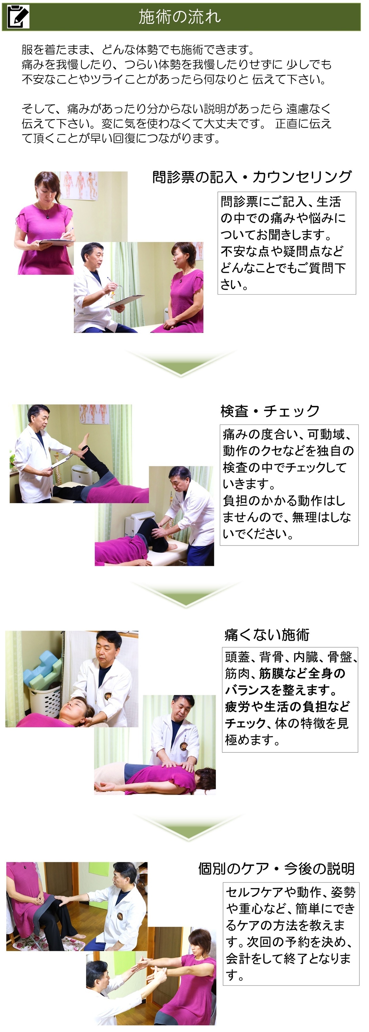 →私の祖母が急に自力で起き上がれなくなり、まっすぐ歩くこともできず、四つん這いでの生活になり、痛みで食事も出来ず、どんどん痩せ細り…の状況で当時は悩んでおりました。 とても元気な祖母が生きる希望も無くすほどの状況で、整形外科、複数整体もハシゴしましたが、原因不明でお手上げ状態。 整形外科はシップの処方のみ、他の整体では直接施術を受けましたが、症状が改善されることはありませんでした。 そして私は当時20代でしたが、体が疲れやすく、頭痛も度々あり、改善できたらなぁと思っておりました。そして昔、足をおもいっきり捻ったときがあり、私自身も接骨院や整体をハシゴして、施術を受けていましたが、完全には治らずだったので諦めていました。